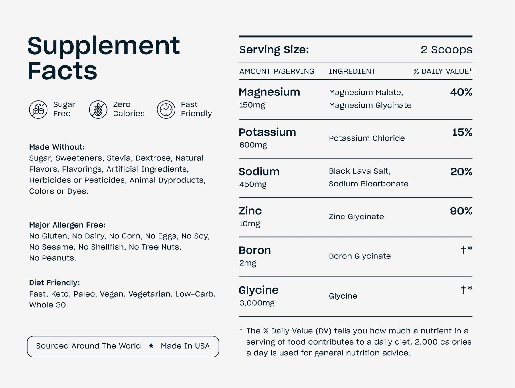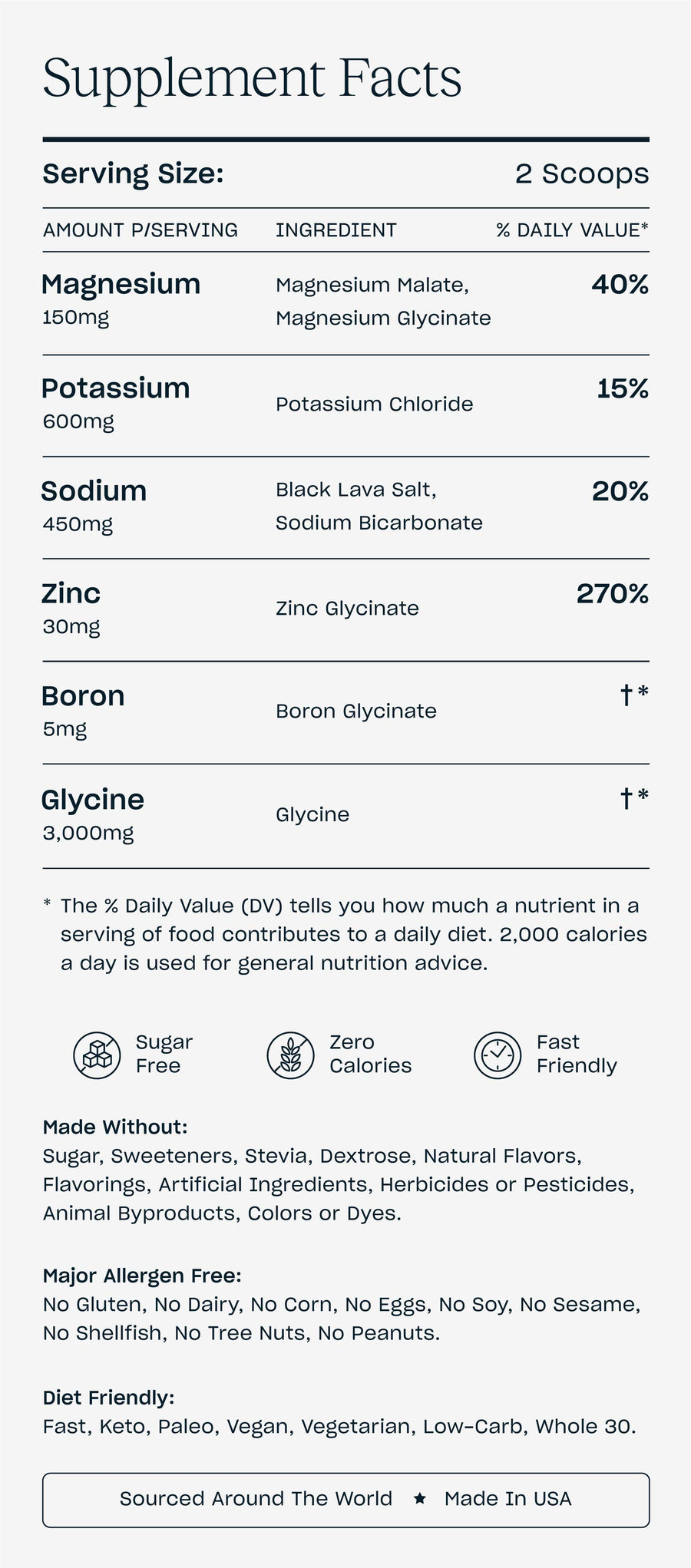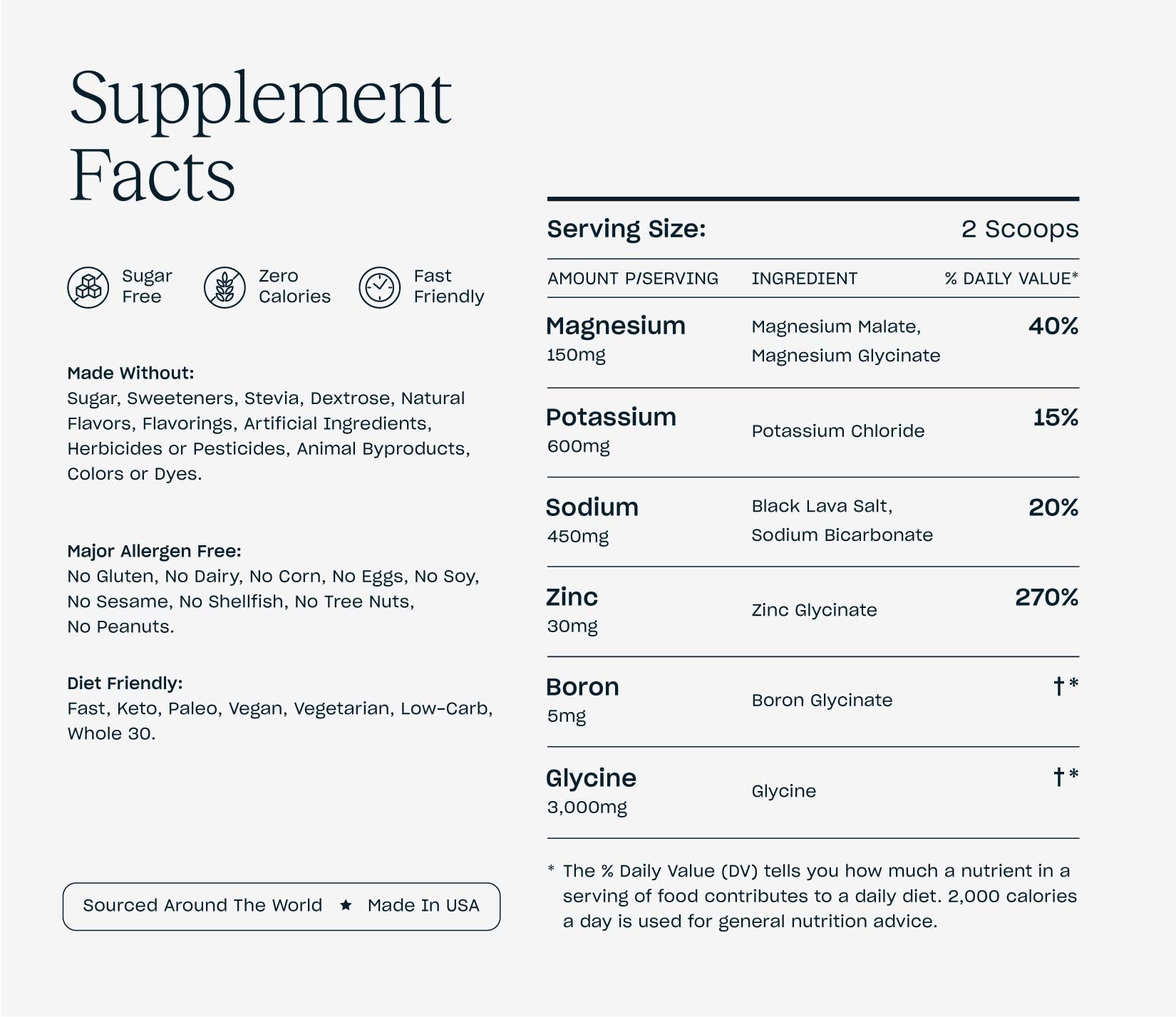 At night, Glycine helps promote deep sleep and supports your body's natural recovery processes helping you wake up feeling restored and energized. SOURCE is the first mineral mix sweetened by Glycine instead of sugar or artificial sweeteners.